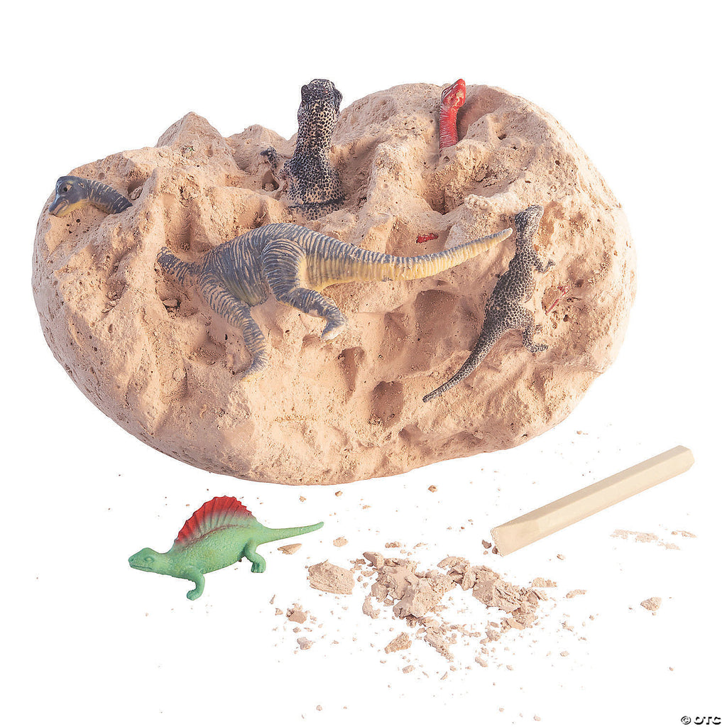 Skip to contentFind 7 different dinosaurs in one BIG dino egg! This giant 7” by 4” dinosaur egg contains a crowd of favorite dinosaurs, from the mighty T-Rex to the winged Pterodactyl. It’s a perfect dig kit for one long rainy afternoon or an activity for two explorers. The large size extends excavation and get-your-hands-dirty fun!
