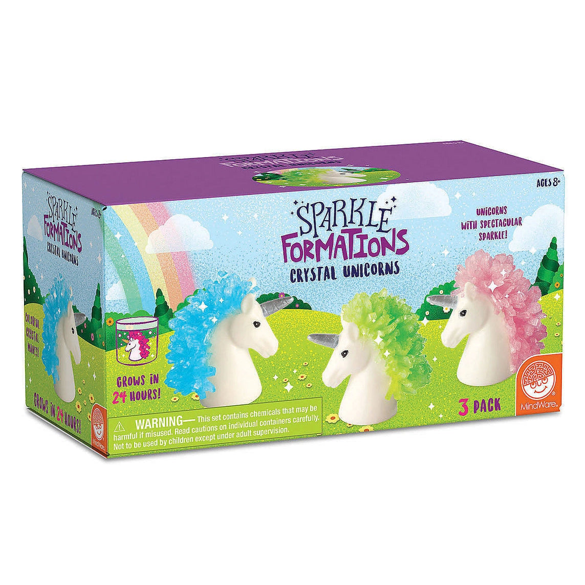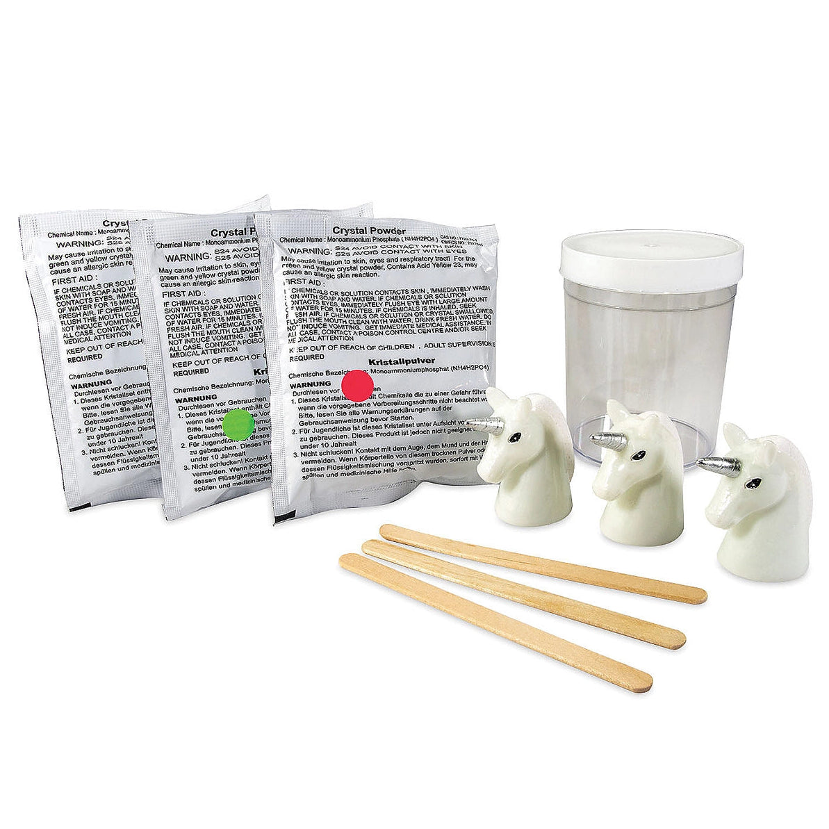 • Includes 3 unicorn molds, 3 colors of crystal powder, stirring sticks, growing container and instruction manual