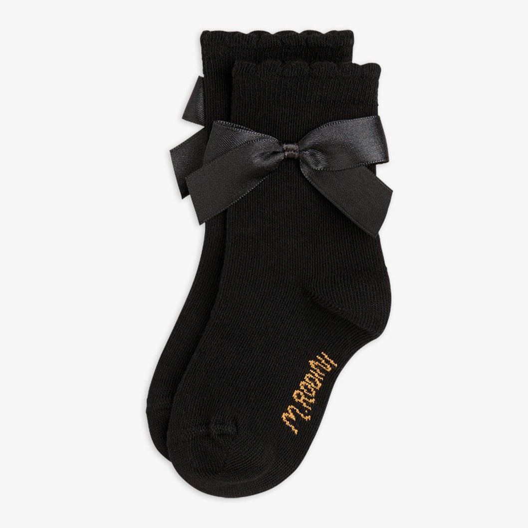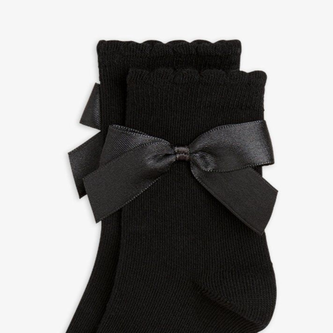 Skip to contentThese socks feature a charming scalloped edge and a large black satin bow, perfect for adding a playful touch or dressing up any look. Made from organic cotton, they offer breathable comfort throughout the day.