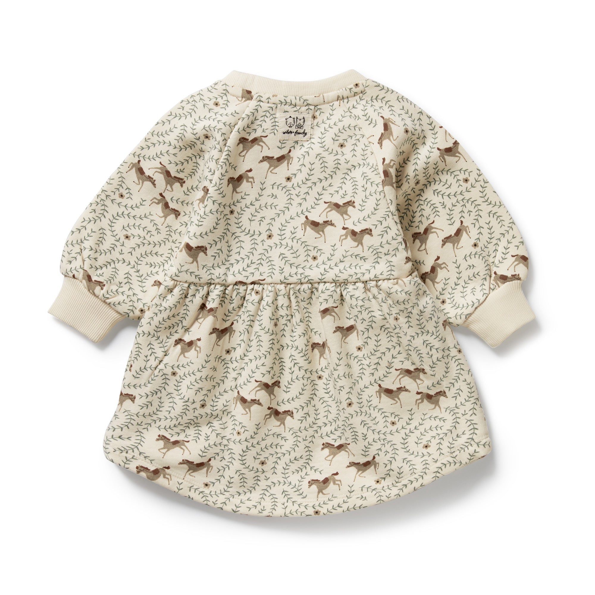 Skip to contentThis Trixie Horse print organic dress is perfect for your little one. With rib cuffs and a brushed inside, it's soft and warm for those chilly days. Plus, the soft washed finish adds extra comfort. Versatile and cute, it's a great everyday basic that pairs perfectly with leggings.