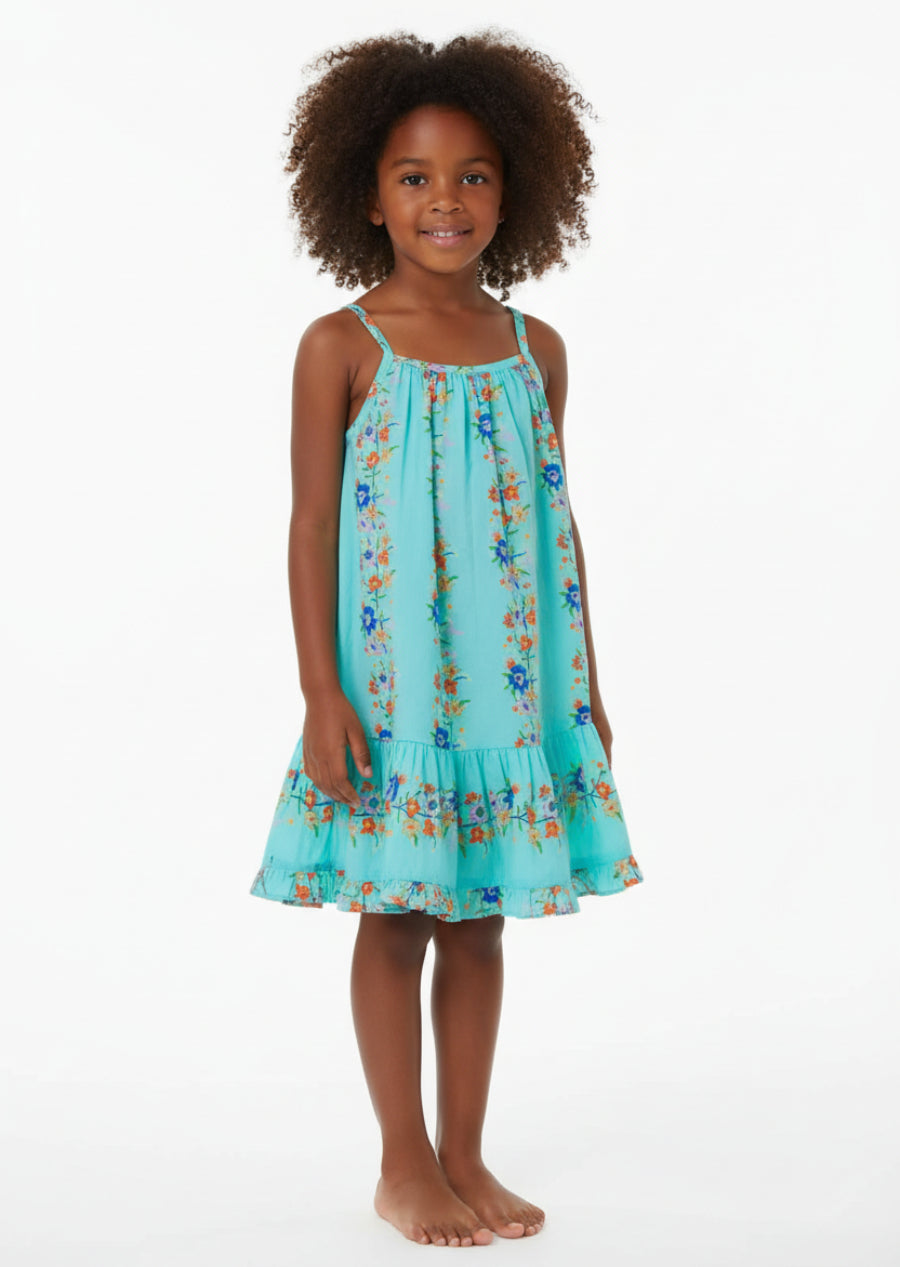 Crafted from premium 100% cotton, this breathable girls summer dress keeps kids cool and comfortable all day long. Ideal for beach trips, outdoor adventures, and everyday wear, this floral girls dress combines style with practicality. The vibrant blue floral print and quality construction make it a must-have addition to any girl's summer wardrobe. Available in sizes 2-9 years with precise length measurements for the perfect fit.