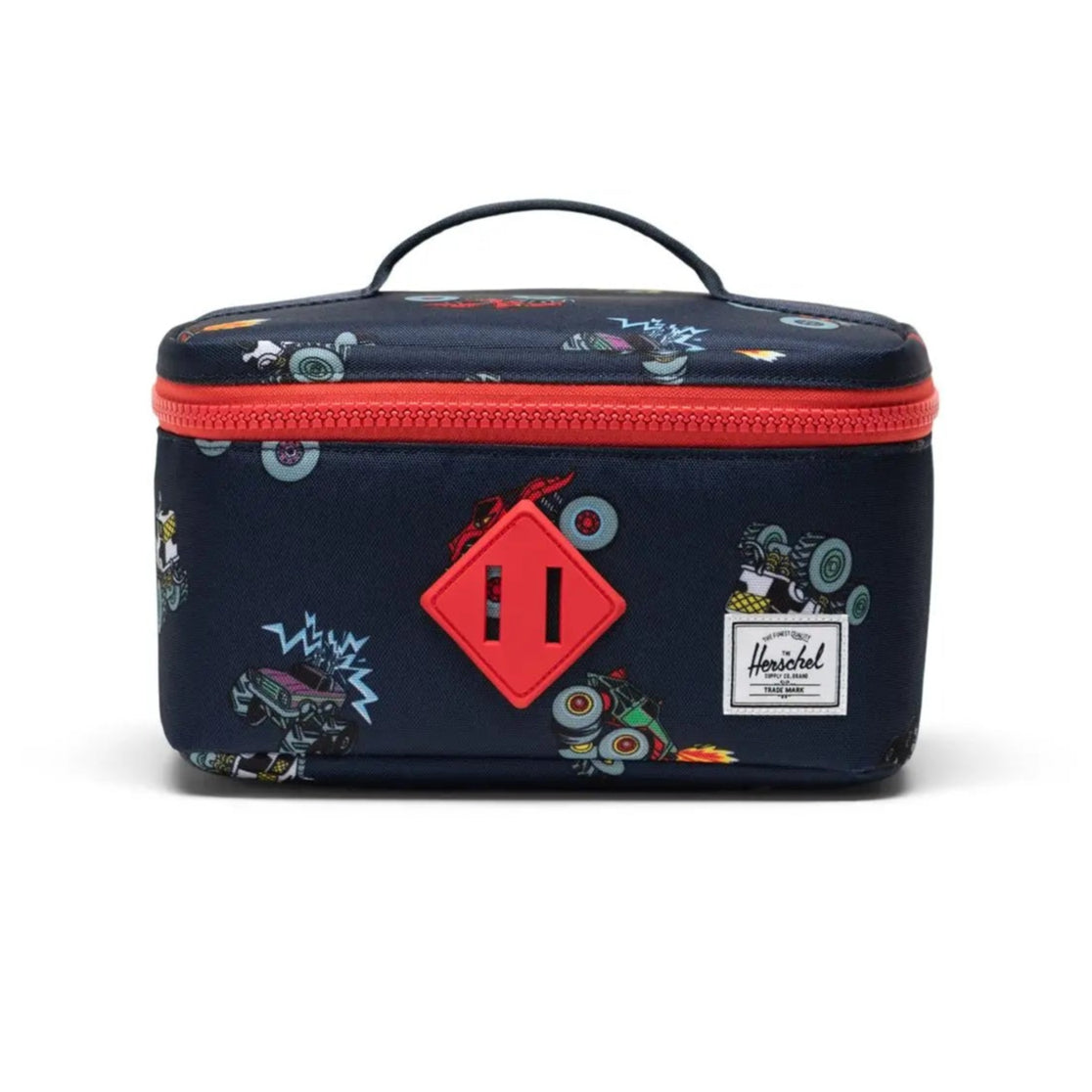 Skip to contentKeep your little one organized. This black lunch box in a fun monster truck print is designed to hold containers upright and fits perfectly in their backpack for trips to class. Crafted with an insulated, wipeable interior, it's easy to clean and ensures food and snacks stay fresh.