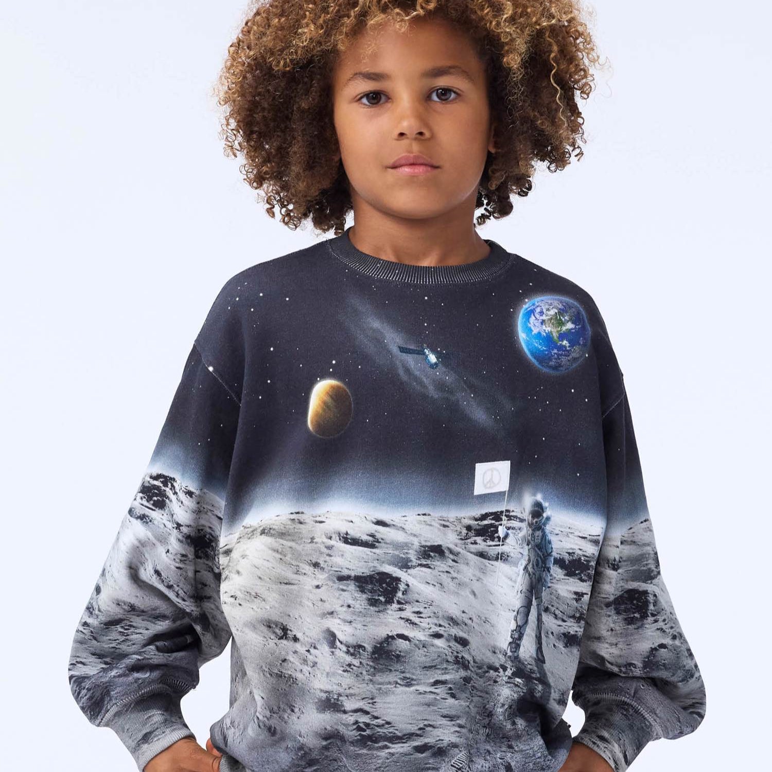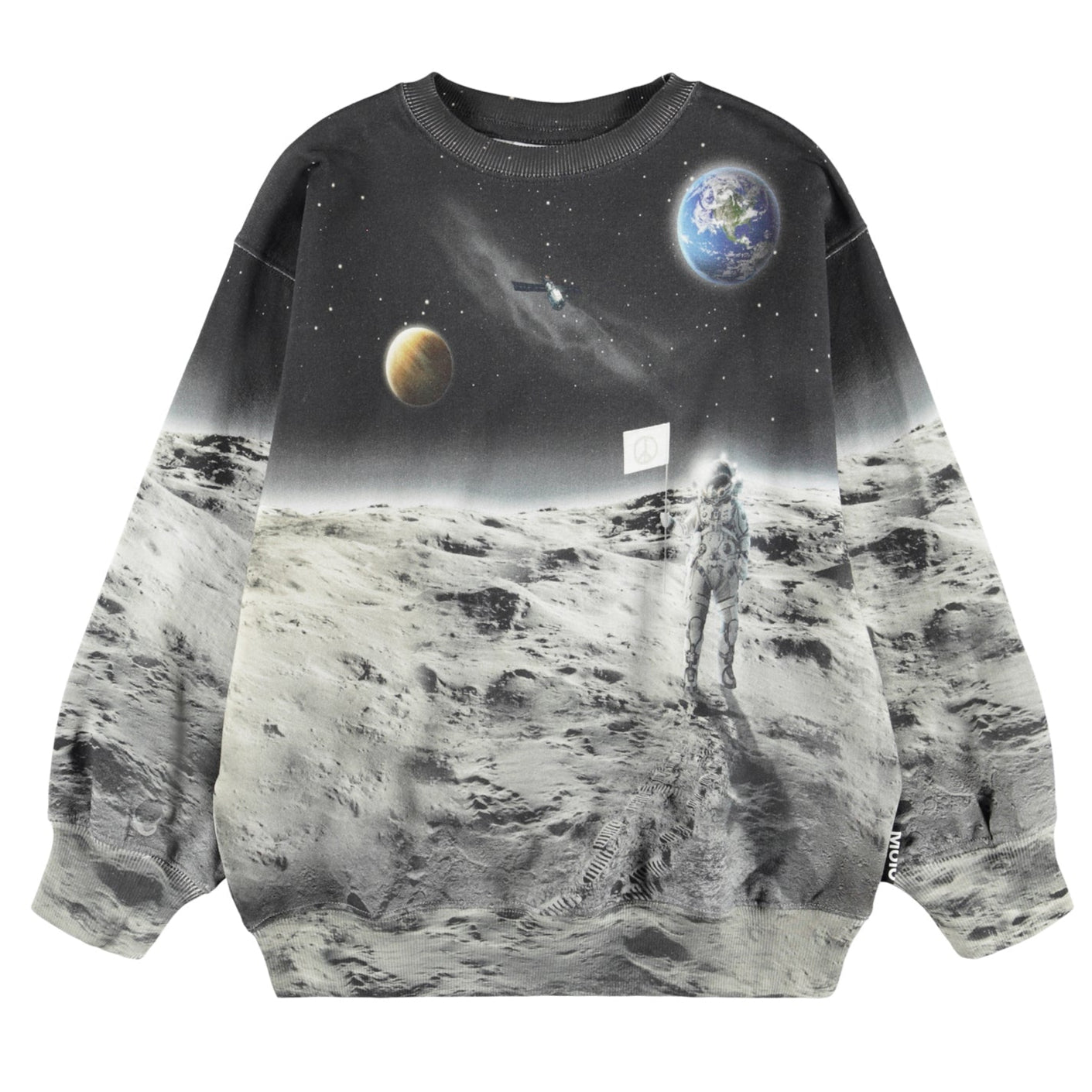 Skip to contentSweatshirt made of soft organic cotton with an amazing digital print of an astronaut on the moon. The sweatshirt has ribbed edges around the neck, sleeves and waist. The sweatshirt has a loose fit.
