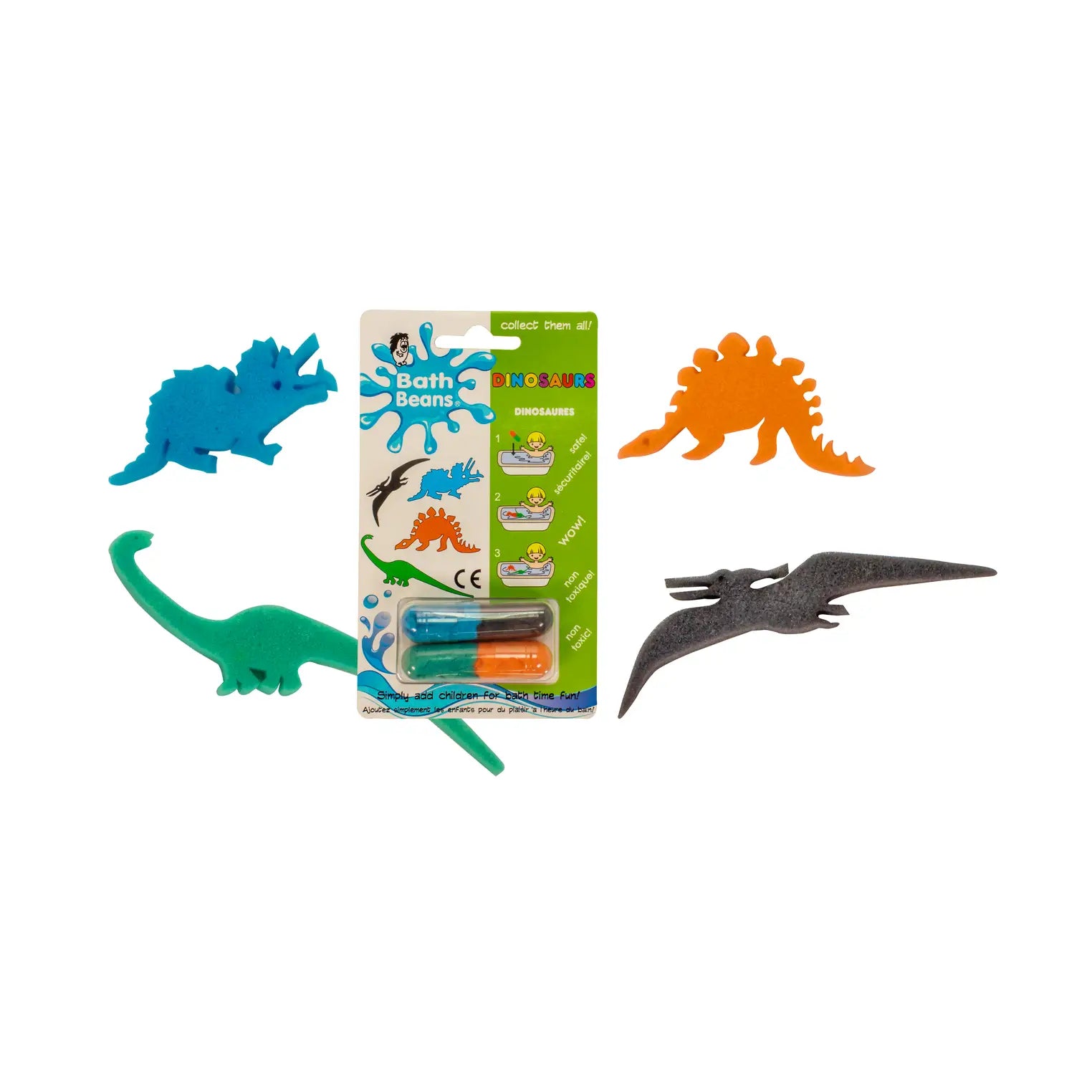 Magic food-grade gelatin capsules release two sponge toys from each capsule when dropped into warm water. Each pack contains two jumbo capsules and each capsule two sponge characters.