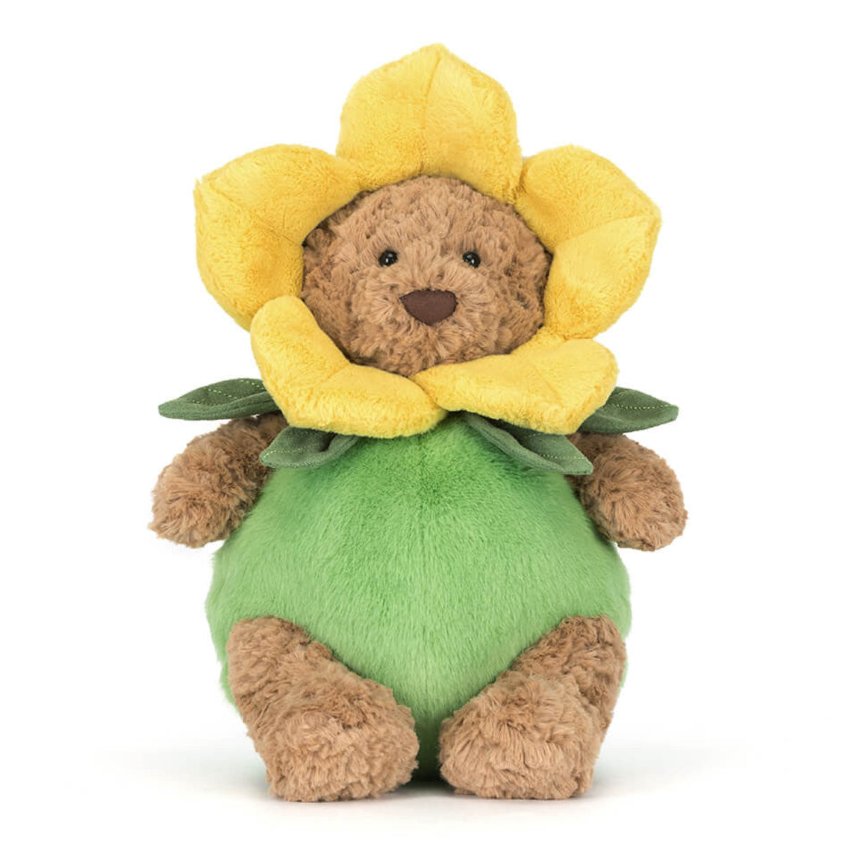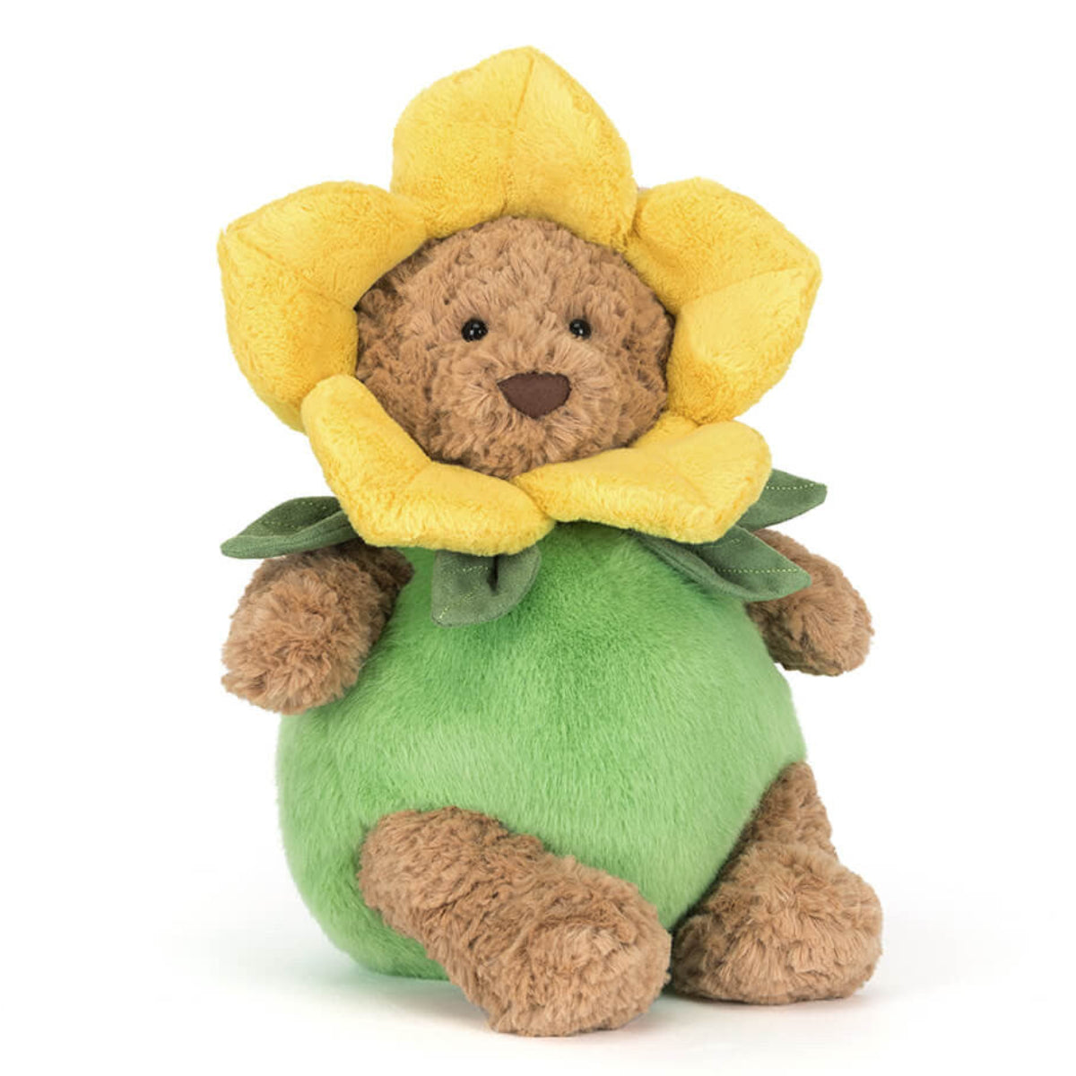 Bartholomew Bear Daffodil Outfit is blooming. Dressed head to toe in his sunny daffodil costume, he’s channeling pure flower power and sharing it generously with everyone he meets – by putting on a spring performance for his friends, naturally!