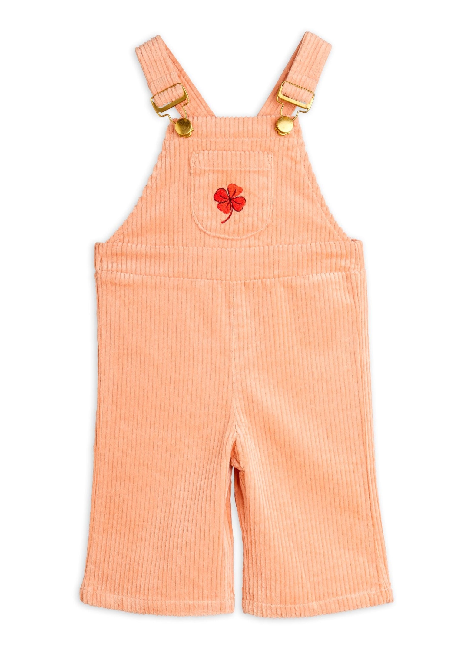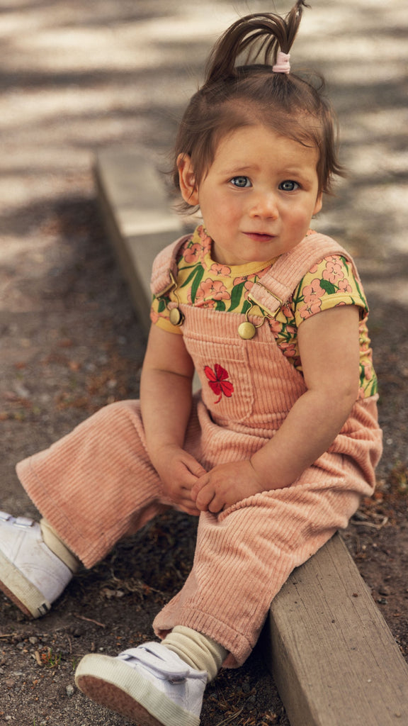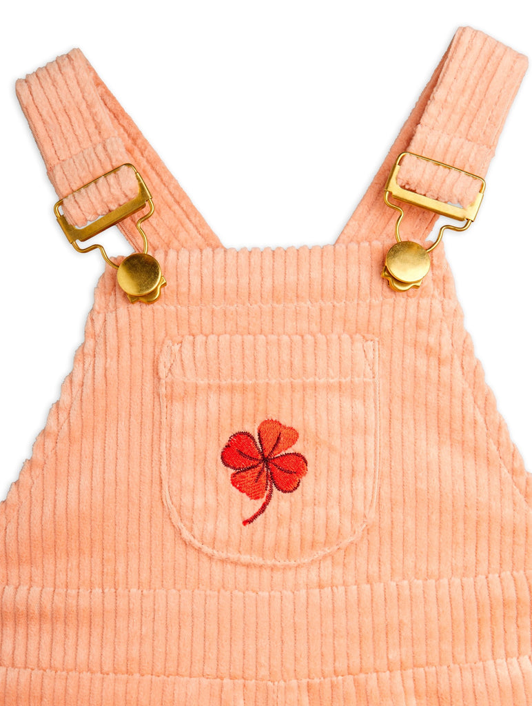 Skip to contentPink corduroy dungarees with embroidered clover made from GOTS-certified organic cotton with a hint of stretch. Designed in a straight flared cut.