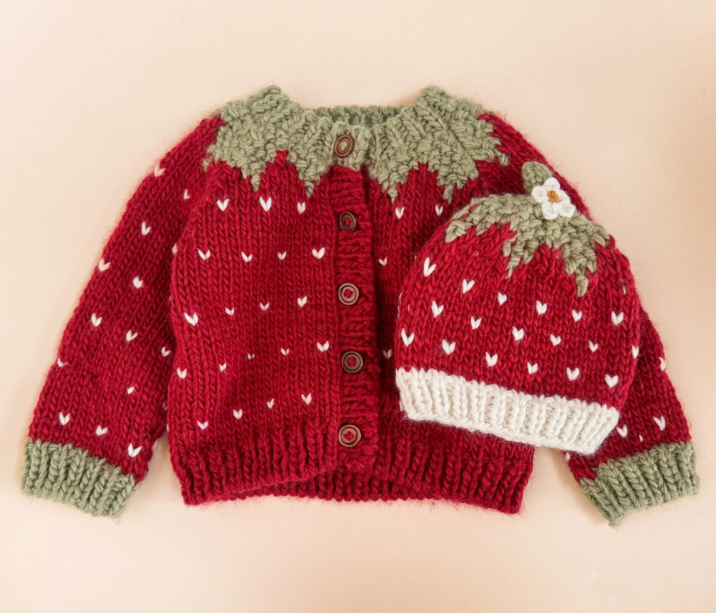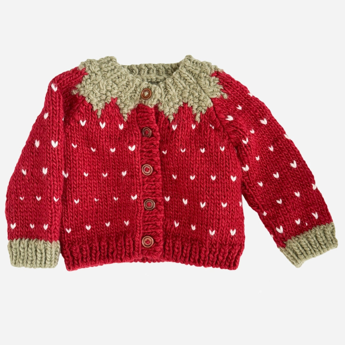 Skip to contentExplore the strawberry patch with Bailey Bunny in our Strawberry Cardigan in Red. Featuring Cream seeds and Sage details, this cute cardigan is sweet as can be!